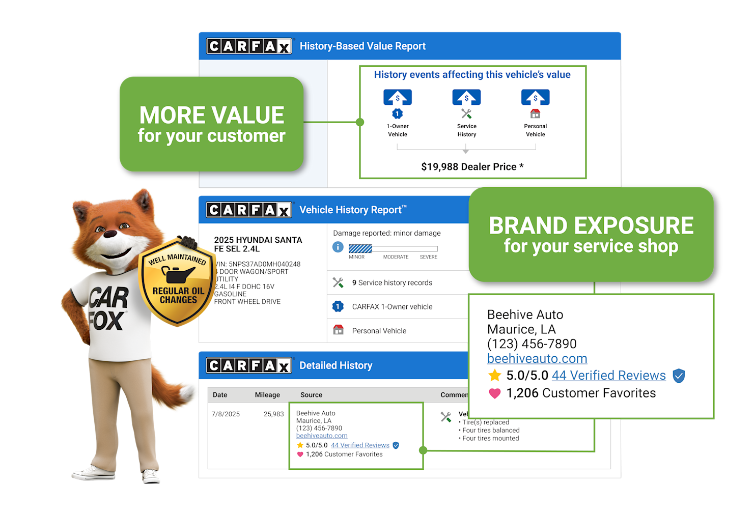 | Access a vehicle’s complete service history with CARFAX Service History Check | ||